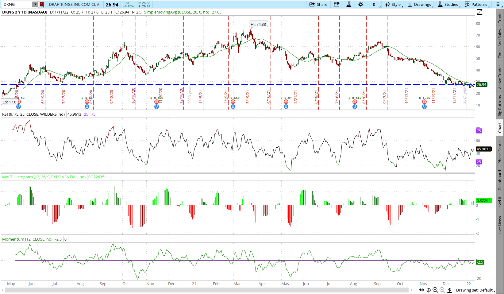 Discover the Power of thinkorswim Today. First up we have Citigroups Jason Bazinet which maintained a buy rating while cutting his price target 20 to 28 per share. The current DraftKings DKNG share price is 1248.